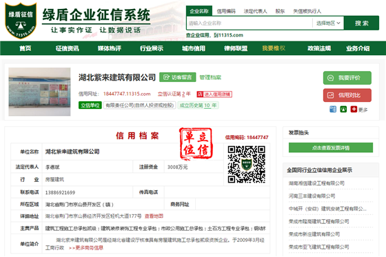 湖北紫來(lái)建筑有限公司(以下簡(jiǎn)稱(chēng)“紫來(lái)建筑”)是綠盾征信的一家立信單位,是經(jīng)湖北省建設(shè)廳核準(zhǔn)具有房屋建筑施工總承包貳級(jí)資質(zhì)的企業(yè)。公司一直重視誠(chéng)信經(jīng)營(yíng),秉持“質(zhì)量第一、用戶(hù)至上、信守合同”的宗旨,承諾“以最好的管理,最優(yōu)的質(zhì)量,守住的經(jīng)營(yíng)”,真誠(chéng)地與業(yè)主單位合作,先后承建了“金山國(guó)際大酒店”、“紫來(lái)花苑”、“金鹿臥龍山莊”、“金匯步行商業(yè)街”、“樂(lè)華廚衛(wèi)”工業(yè)園等一大批商業(yè)、住宅、工業(yè)項(xiàng)目。