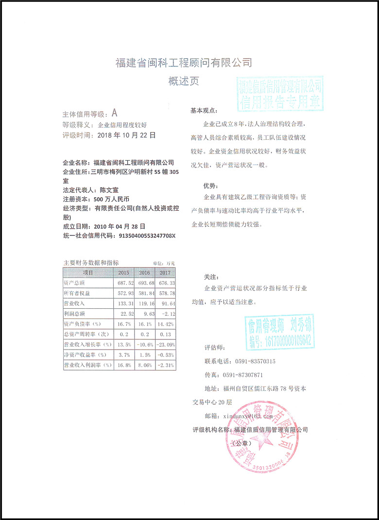 福建省閩科工程顧問有限公司2018