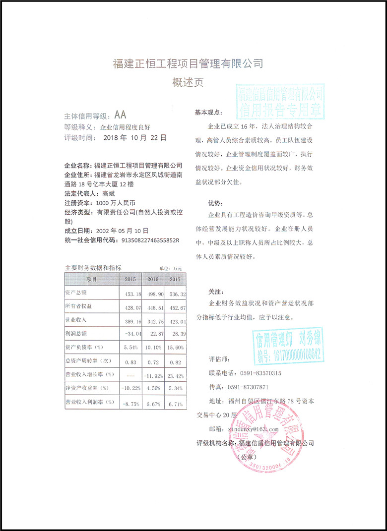 福建正恒工程項目管理有限公司2018