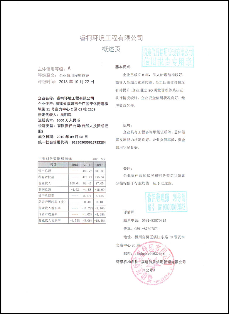 睿柯環境工程有限公司2018