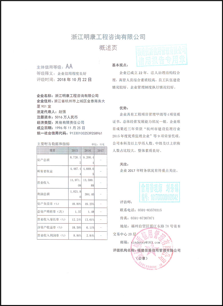 浙江明康工程咨詢有限公司2018