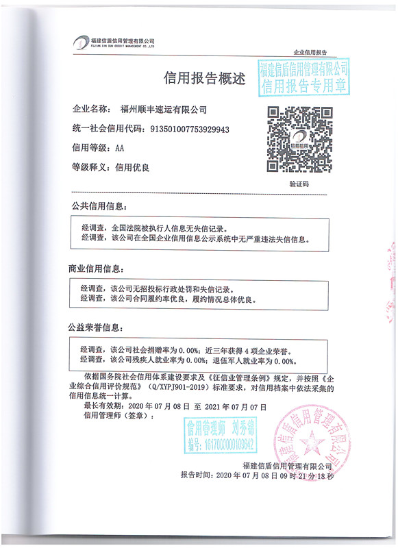 福州順豐速運有限公司2020