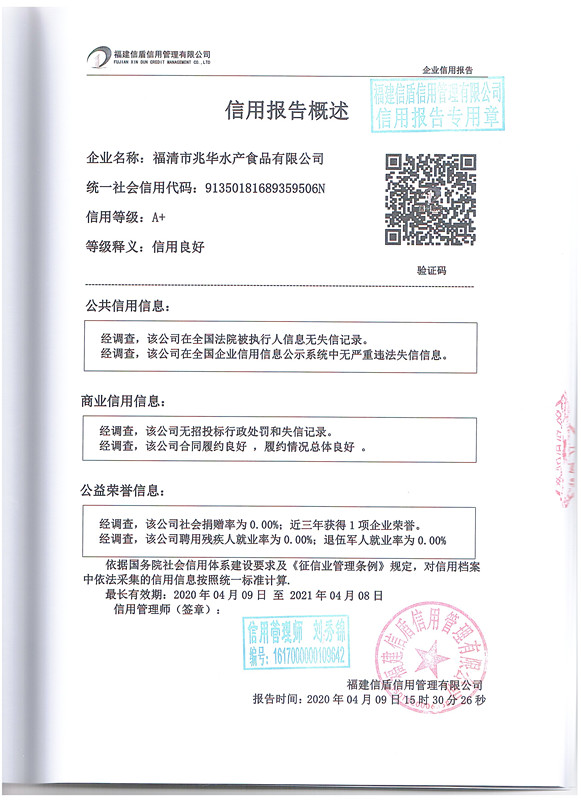 福清市兆華水產(chǎn)食品有限公司2020-1