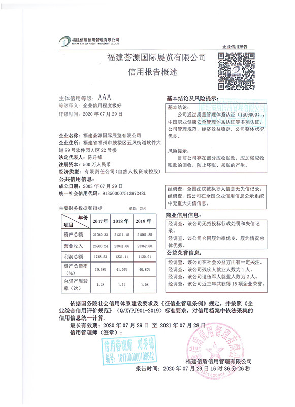 福建薈源國際展覽有限公司2020-1