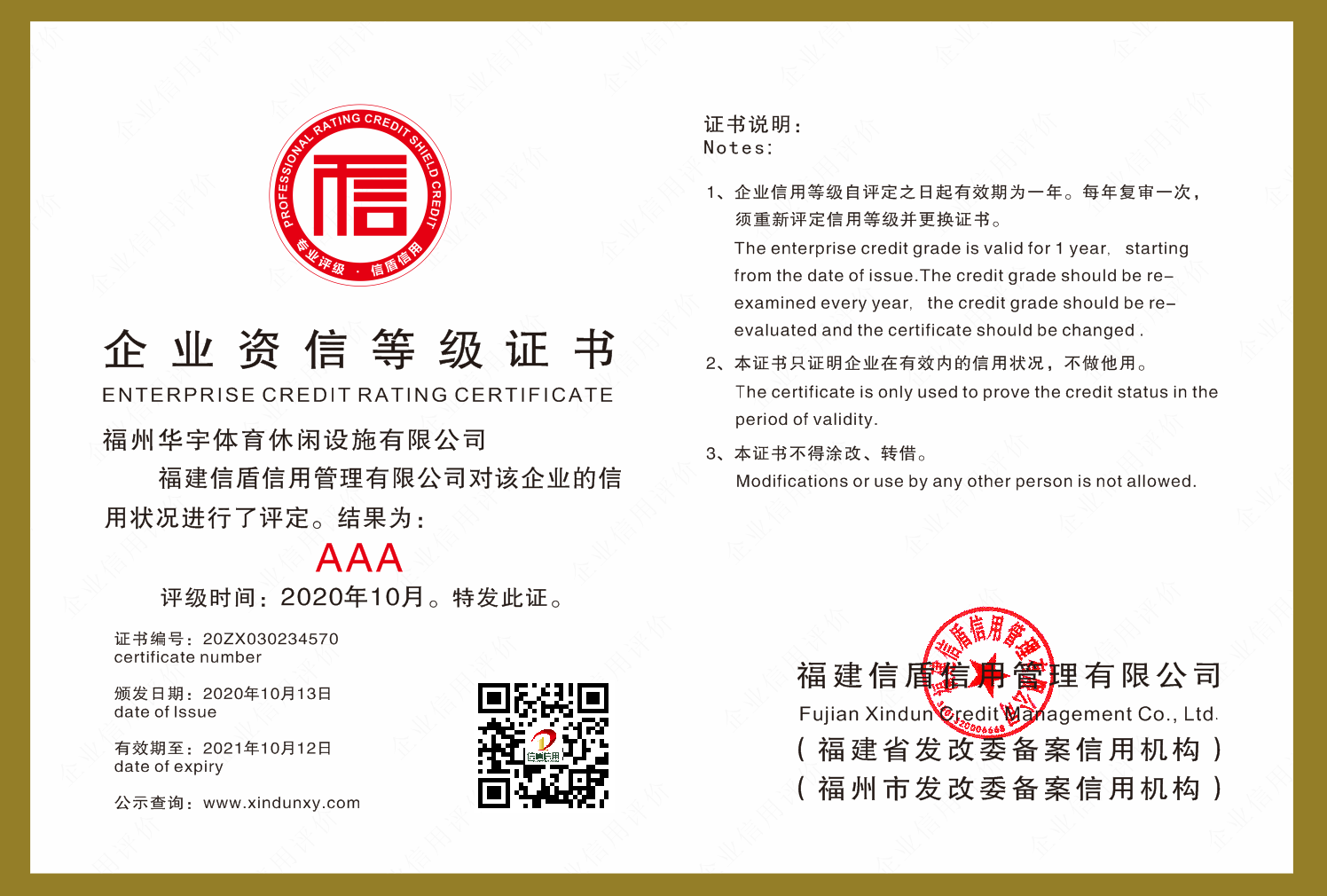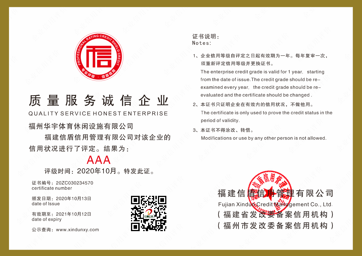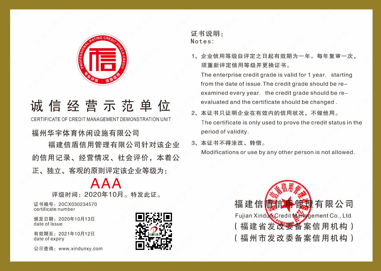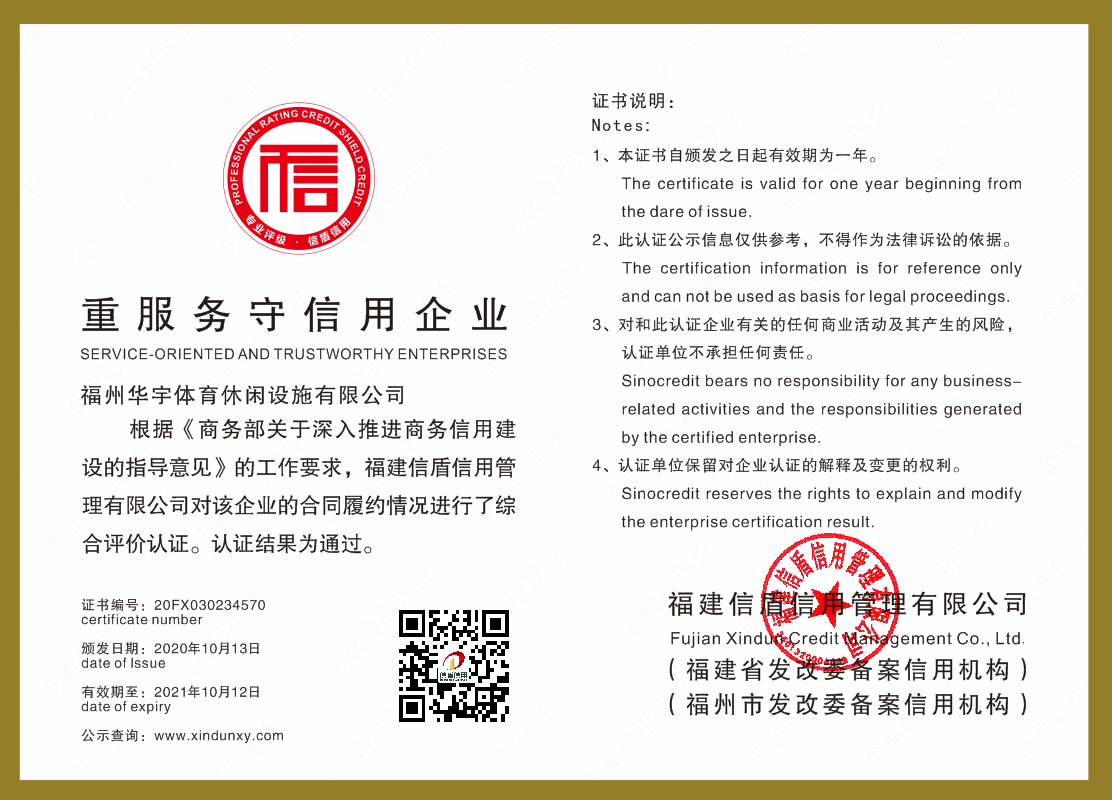 福州華宇體育休閑設(shè)施有限公司2020