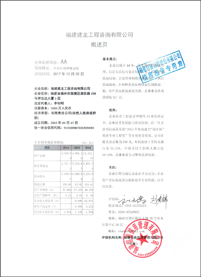 福建建龍工程咨詢有限公司 XDPJ201712241