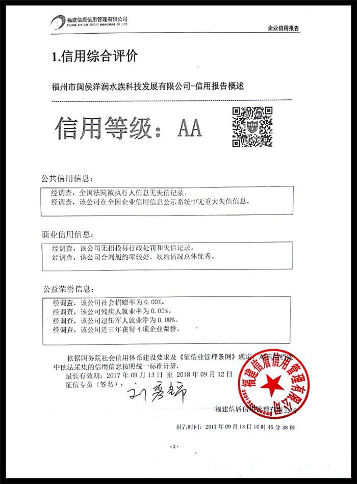 福州市閩侯洋潤水族科技發展有限公司 XDBG201709017