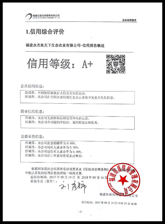 福建永杰魚天下生態農業有限公司 XDBG201709019