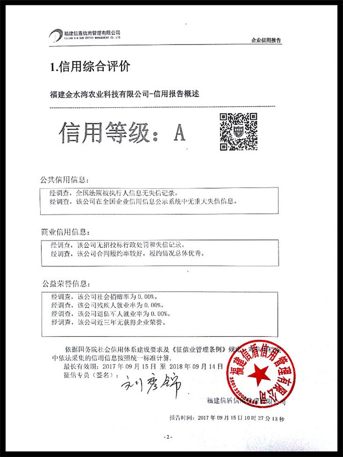 福建金水灣農業科技有限公司 XDBG201709020