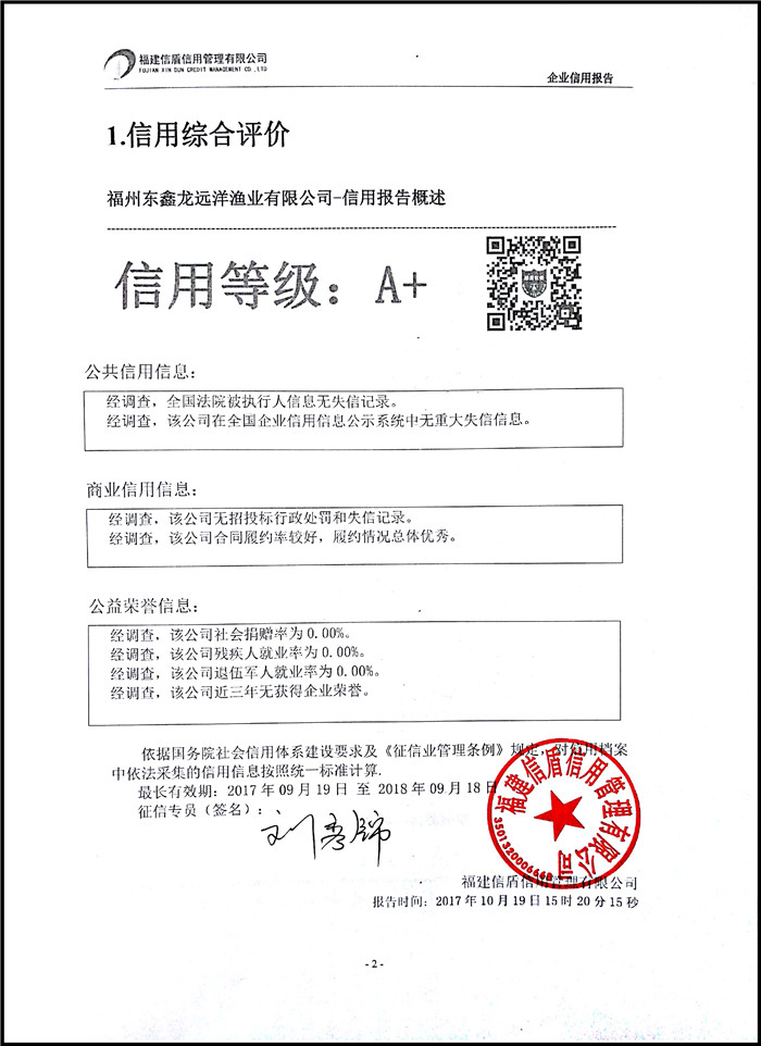 福州東鑫龍遠(yuǎn)洋漁業(yè)有限公司 XDBG201710004