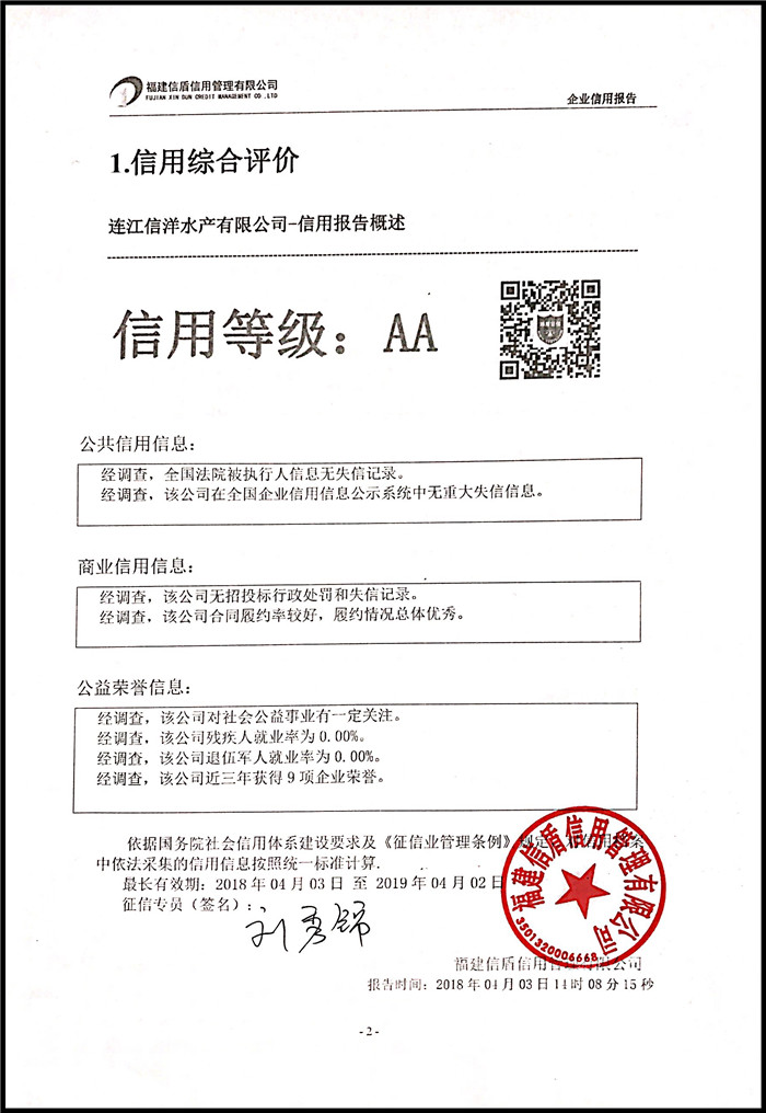 連江信洋水產有限公司 XDBG201804002