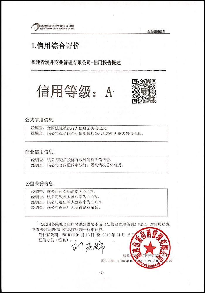 福建省潤升商業管理有限公司 XDBG201804007