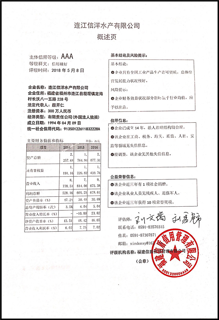 連江信洋水產有限公司 XDPJ201803197