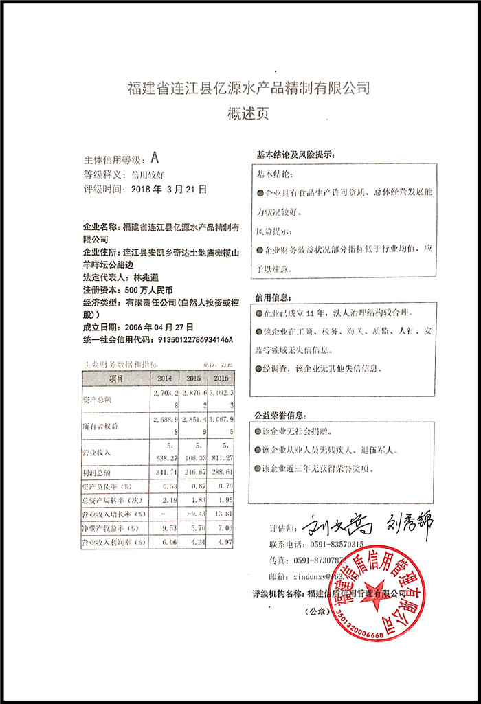 福建省連江縣億源水產(chǎn)品精制有限公司 XDPJ201803152