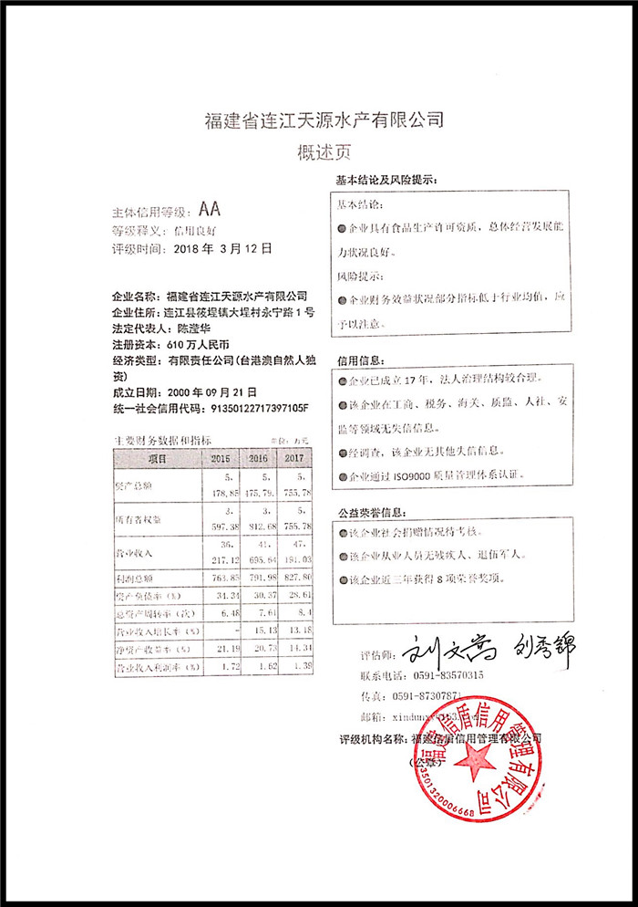 福建省連江天源水產有限公司 XDPJ201803195
