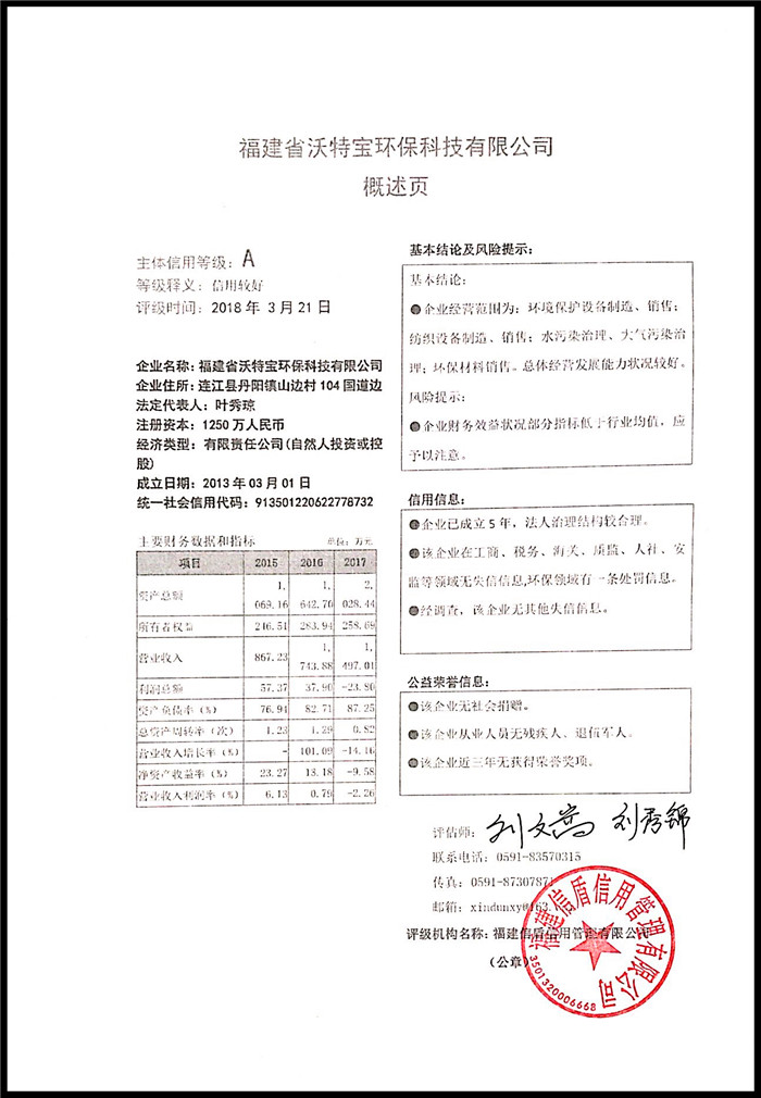 福建省沃特寶環(huán)保科技有限公司 XDPJ201803199