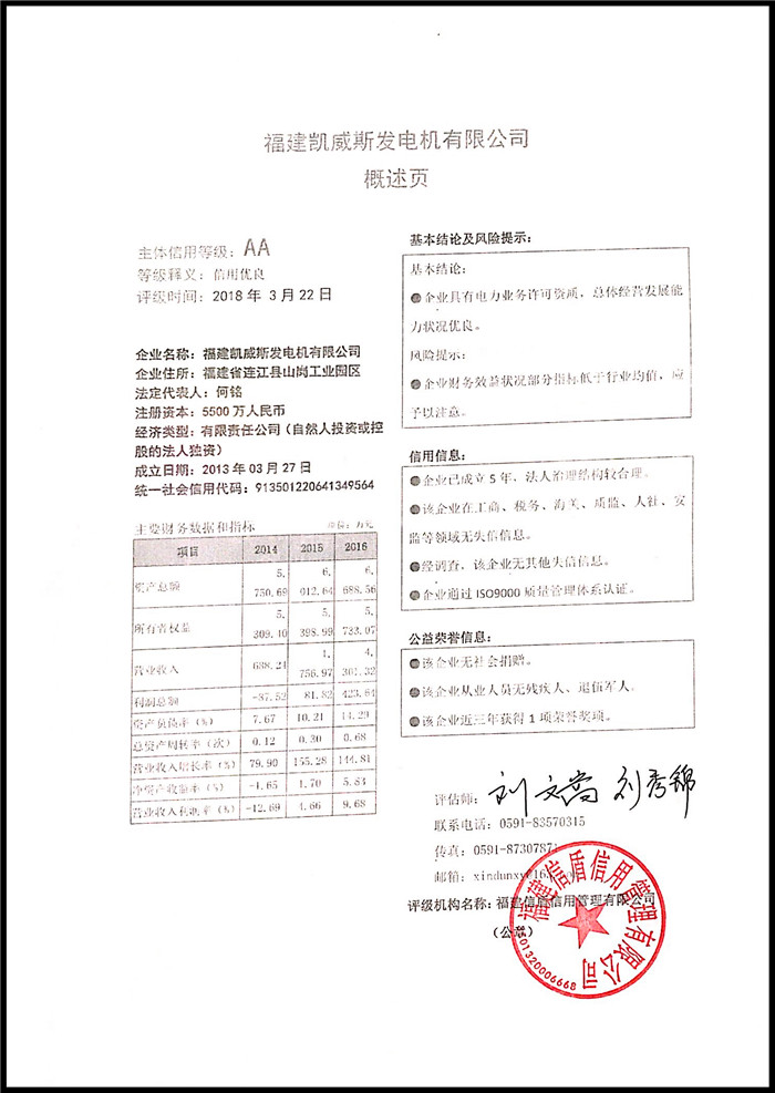 福建凱威斯發(fā)電機有限公司 XDPJ201803212