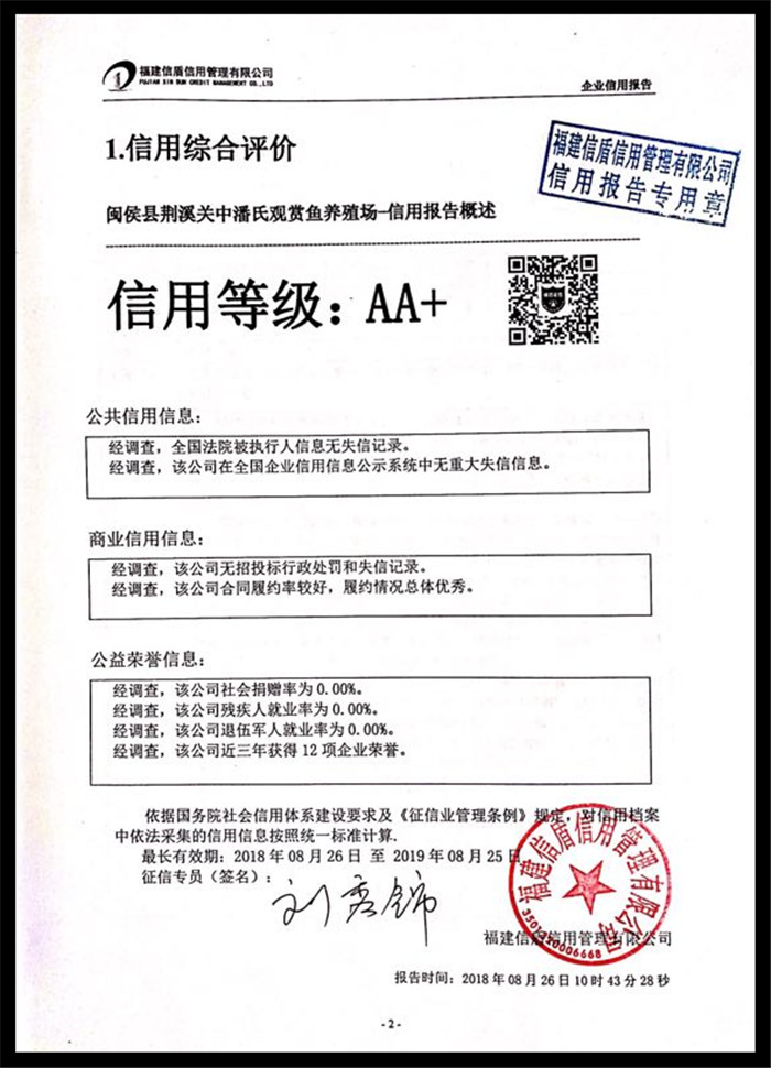閩侯縣荊溪關中潘氏觀賞魚養殖場 XDBG201808006
