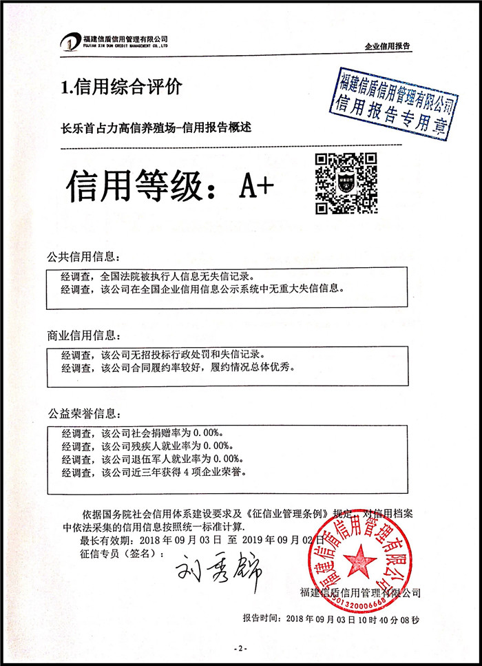 長樂首占力高信養殖場 XDBD201809001