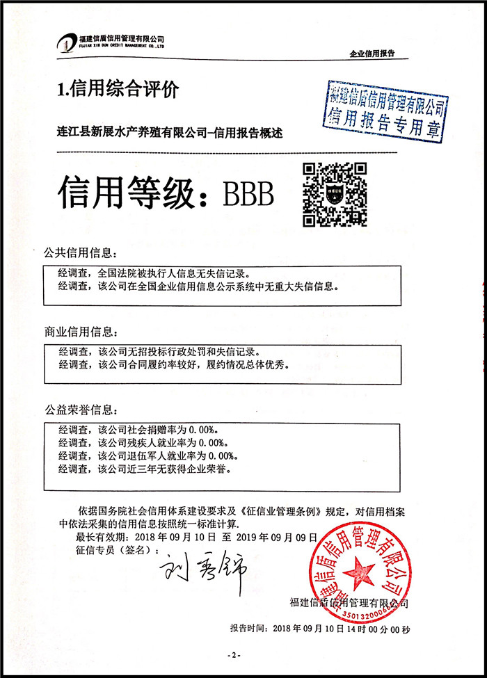 連江縣新展水產(chǎn)養(yǎng)殖有限公司 XDBD201809015