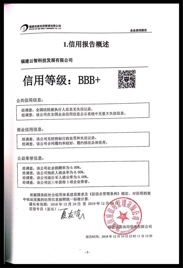 福建云智科技發展有限公司 XDBG201812156