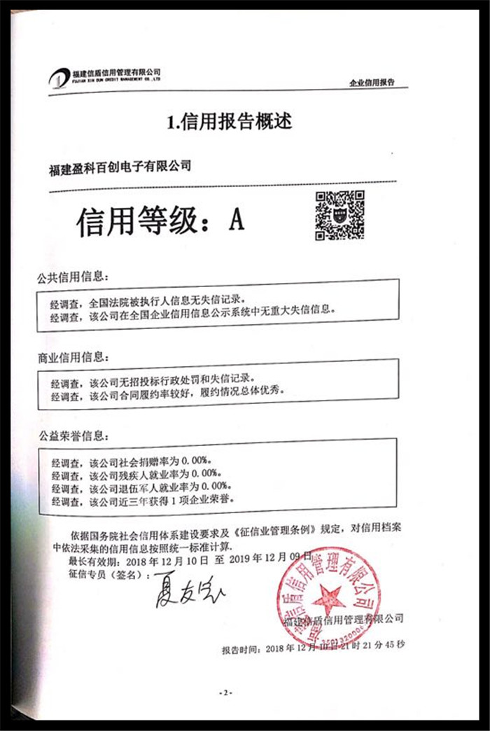 福建盈科百創(chuàng)電子有限公司 XDBG201812155
