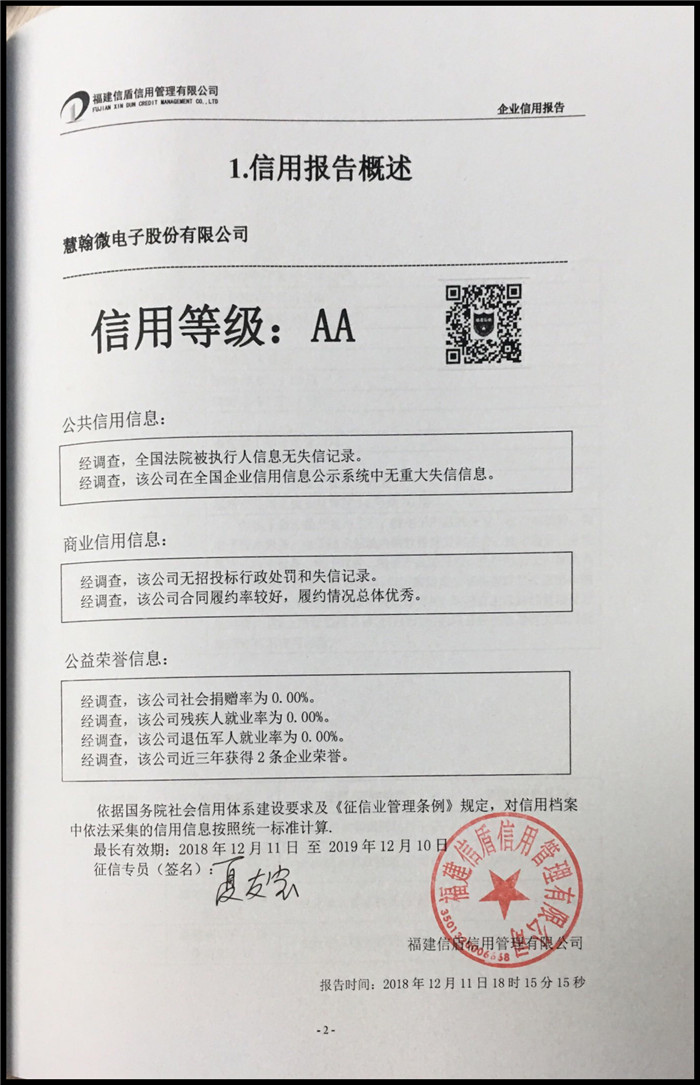 慧翰微電子股份有限公司 XDBG201812119
