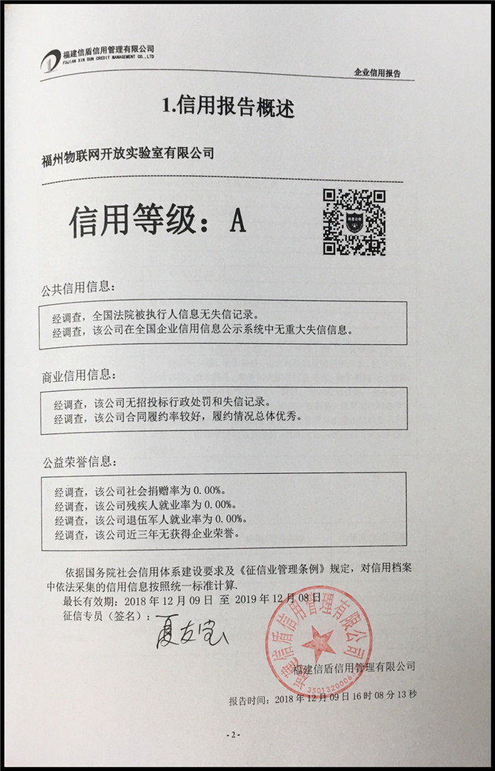 福州物聯網開放實驗室有限公司 XDBG201812191