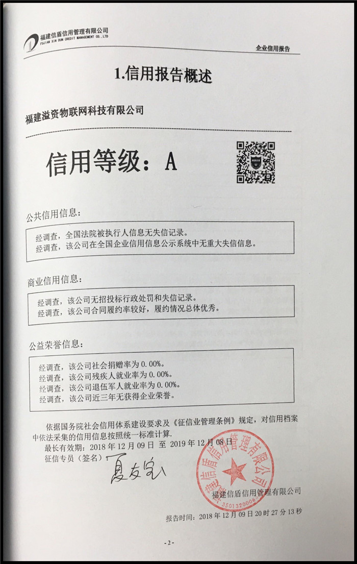 福建溢資物聯網科技有限公司 XDBG201812193