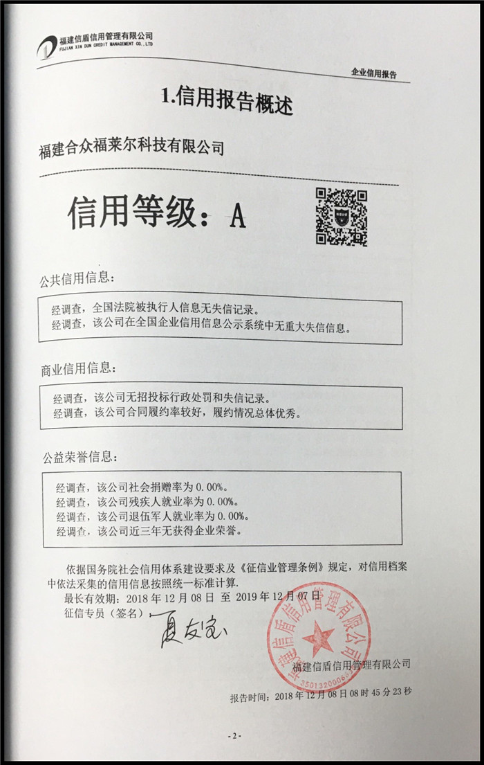 福建合眾福萊爾科技有限公司 XDBG201812197