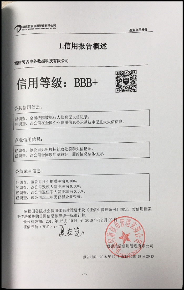 福建阿古電務數(shù)據(jù)科技有限公司 XDBG201812167
