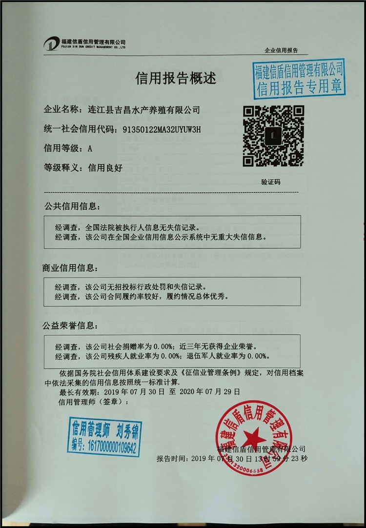 連江縣吉昌水產養(yǎng)殖有限公司2019