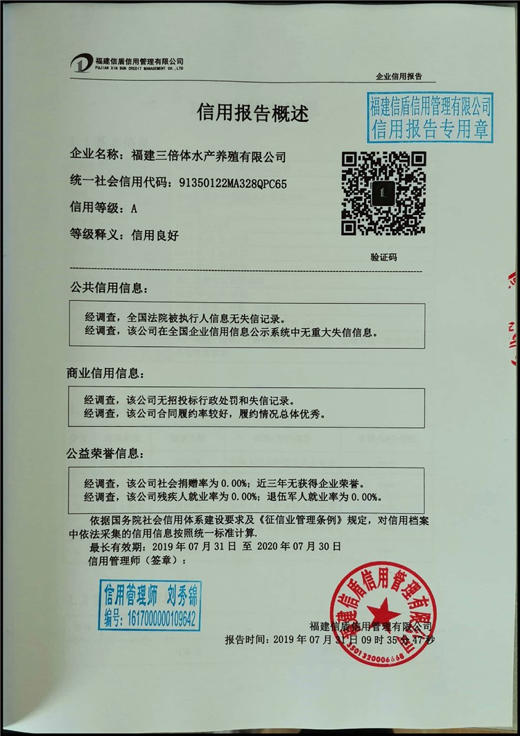 福建三倍體水產養殖有限公司2019