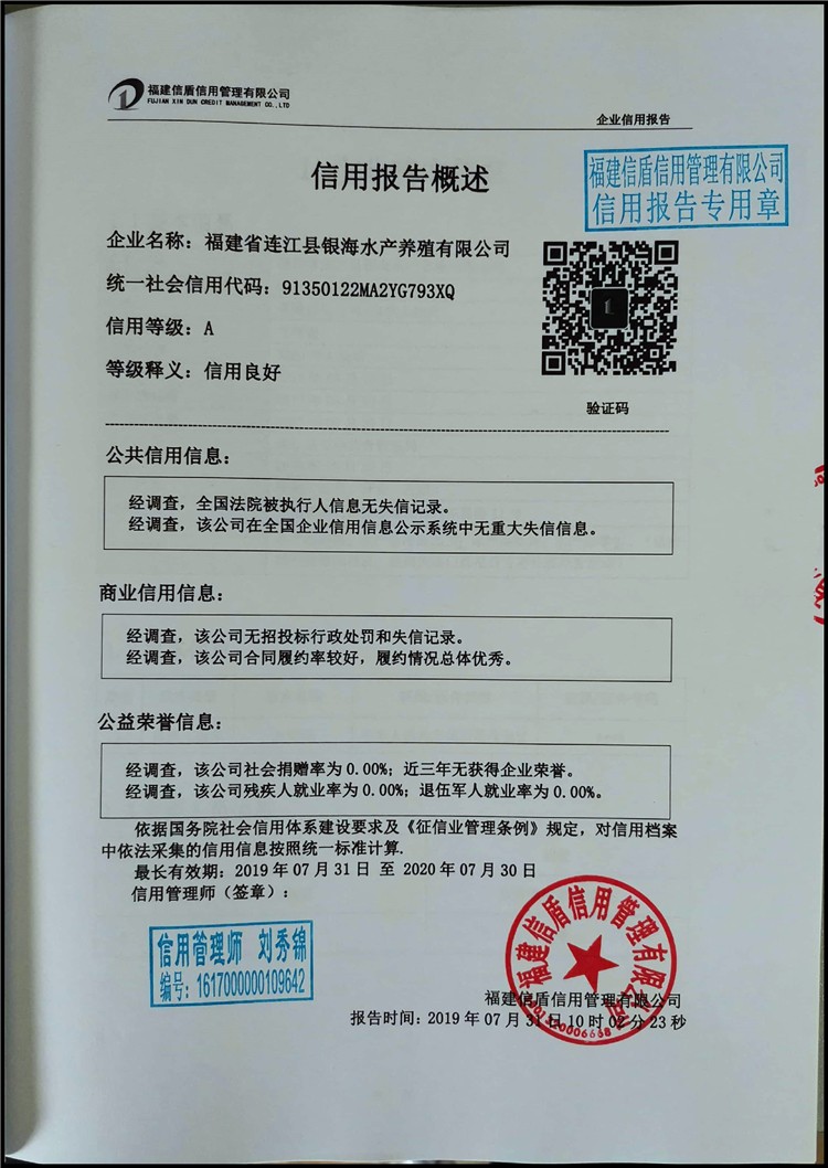 福建省連江縣銀海水產(chǎn)養(yǎng)殖有限公司2019